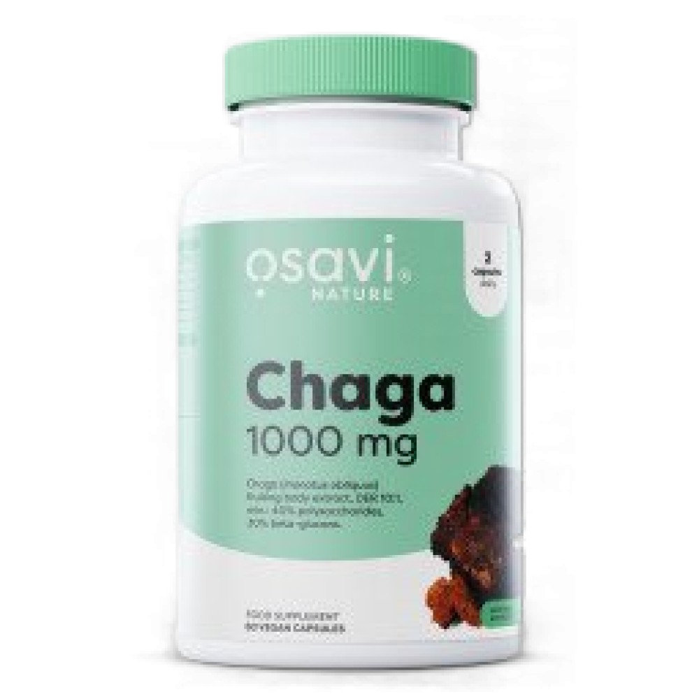 Osavi Chaga 1000 mg е хранителна добавка, базирана на екстракт от гъбата Chaga (лат. Inonotus obliquus) — мощен натурален адаптоген и антиоксидант, стандартизиран да съдържа поне 30 % бета‑глюкани. Формулата цели да подпомогне имунната система, общото здраве и естествената устойчивост на организма, особено при стрес, натоварено ежедневие или интензивен начин на живот.