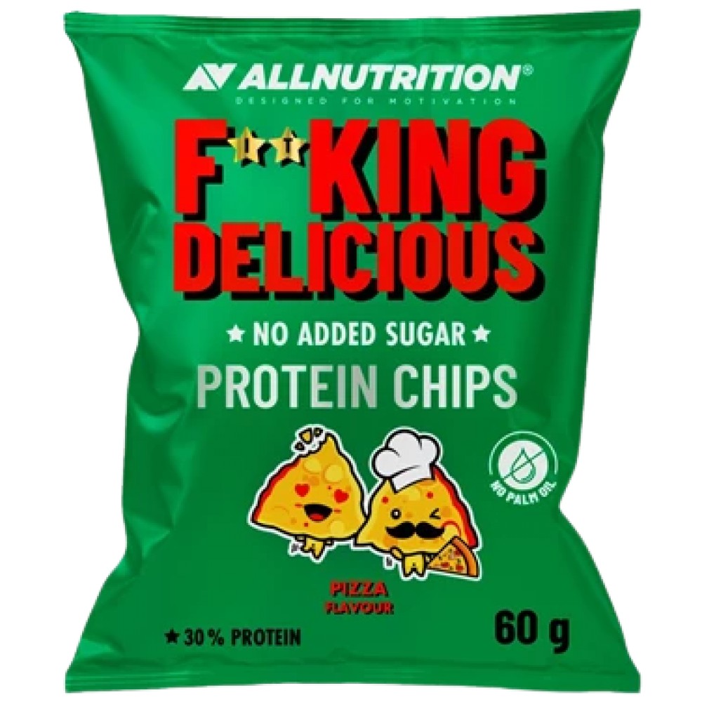 AllNutrition F**King Delicious Protein Chips - протеинови чипсове с високо съдържание на протеин (до 31 % на 100 g), предназначени като по-здравословна алтернатива на традиционните картофени чипсове. Те са печени, а не пържени, което допринася за по-ниско съдържание на мазнини, и са произведени без изкуствени аромати, оцветители, консерванти или палмово масло, което ги прави подходящ избор за хора, които искат вкусен, но сравнително балансиран снакс в рамките на активен начин на живот или контрол на теглото.