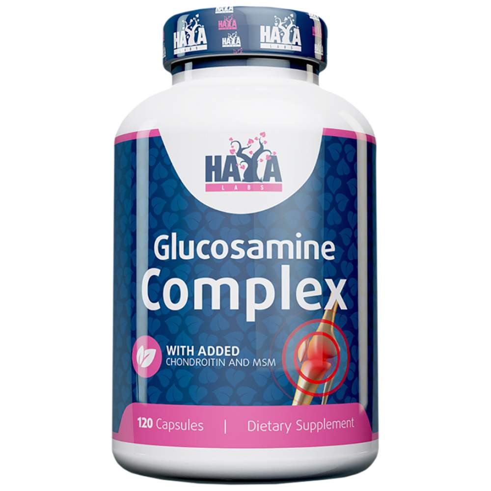 Глюкозамин и хондроитин са всепризнати като водещи добавки за поддържане на здрави стави. МСМ (Метилсулфонилметан) е добавен за по-нататъшно поддържане на здрава ставна функция. HAYA Glucosamine Complex with Chondroitin & MSM е уникална формула, предоставяща балансирана комбинация от тези хранителни добавки. Научните изследвания сочат, че комбинацията от глюкозамин и хондроитин сулфат е по-ефективна в забавяне прогресивното разрушаване на хрущяла, в сравнение с който и да е от компонентите поотделно. Последните проучвания показват позитивни ефекти от препарати на база глюкозамин и хондроитин сулфат при ставни проблеми; тези проучвания заключават, че сулфатът е най-добре използваната форма от тялото. Глюкозамин предоставя суровите материали, необходими на организма за производство на хрущял. МСМ има потенциално терапевтично приложение за поддържане на добър противовъзпалителен ефект и качествена функция на ставите. В допълнение, тази формула съдържа Бромелаин и Босвелия, добавени за подкрепа и насърчаване на ефектите от съставките.