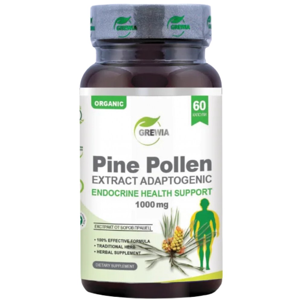 Organic Pine Pollen Extract Adaptogenic е иновативен продукт с марка Grewia. Той представлява хранителна добавка 60бр. капсули, лабораторно и клинично изпитана, след серия от проби и анализи, в чиято иновативна и ефективна формула, в състав от високо стандартизиран и пречистен билков екстракт от Боров прашец /Pine Pollen Extract 99% HCI/, със основната цел, да осигури достатъчно количество полезни нутриенти за здравословното функциониране на Ендокринната система /Хипоталамуса, Хипофиза, Паращитовидните жлези (околощитовидни жлези), Панкреаса или задстомашна жлеза, Щитовидната жлеза, Надбъбречните жлези и Епифизната жлеза/ да зарежда с енергия при умора, да подобрява функцията на сърдечно-съдовата система и подобрява хормоналния баланс.