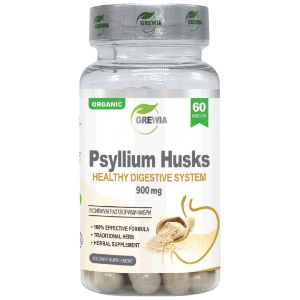 Psyllium Husks 900mg. е иновативен пробиотичен продукт с марка Grewia. Той представлява хранителна добавка 60бр. капсули, в чиято иновативна и ефективна формула, в състав от разтворимите фибри Псилиум (люспи/семена) /Psyllium Husks Powder Husk Seed 98% HPLC /, със основната цел – да допринася за нормалното функциониране на стомашно-чревния тракт и благоприятстване на чревна флора, да подобрява функционирането на червата, като спомага за по-бързото усвояване на хранителните вещества в организма и нaмaлявa нaтpyпвaнeто нa тoĸcини, да облекчава киселините и намалява чувството на тежест и дискомфорт в стомаха, да регулира кръвното налягане и подържа нормални нива на кръвната захар, да подпомага метаболизма и подкрепя отделителната система.