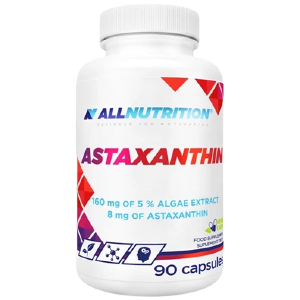 AllNutrition Astaxanthin 4 mg е хранителна добавка с натурален астаксантин, извлечен от микроводораслите Haematococcus pluvialis, предназначена да подпомага антиоксидантната защита на организма, здравето на кожата, зрението и физическата издръжливост.