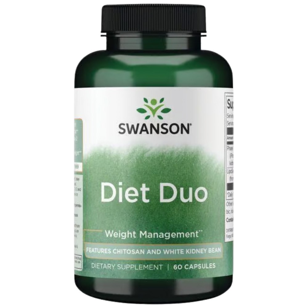 Swanson Diet Duo Chitosan & White Kidney Bean е хранителна добавка, създадена да подпомага контрола на теглото и здравословния начин на живот. Формулата комбинира хитозан и екстракт от бял боб, които действат синергично за ограничаване усвояването на мазнини и въглехидрати. Това я прави подходящ избор за хора, които търсят допълнителна подкрепа при диета и активен режим.