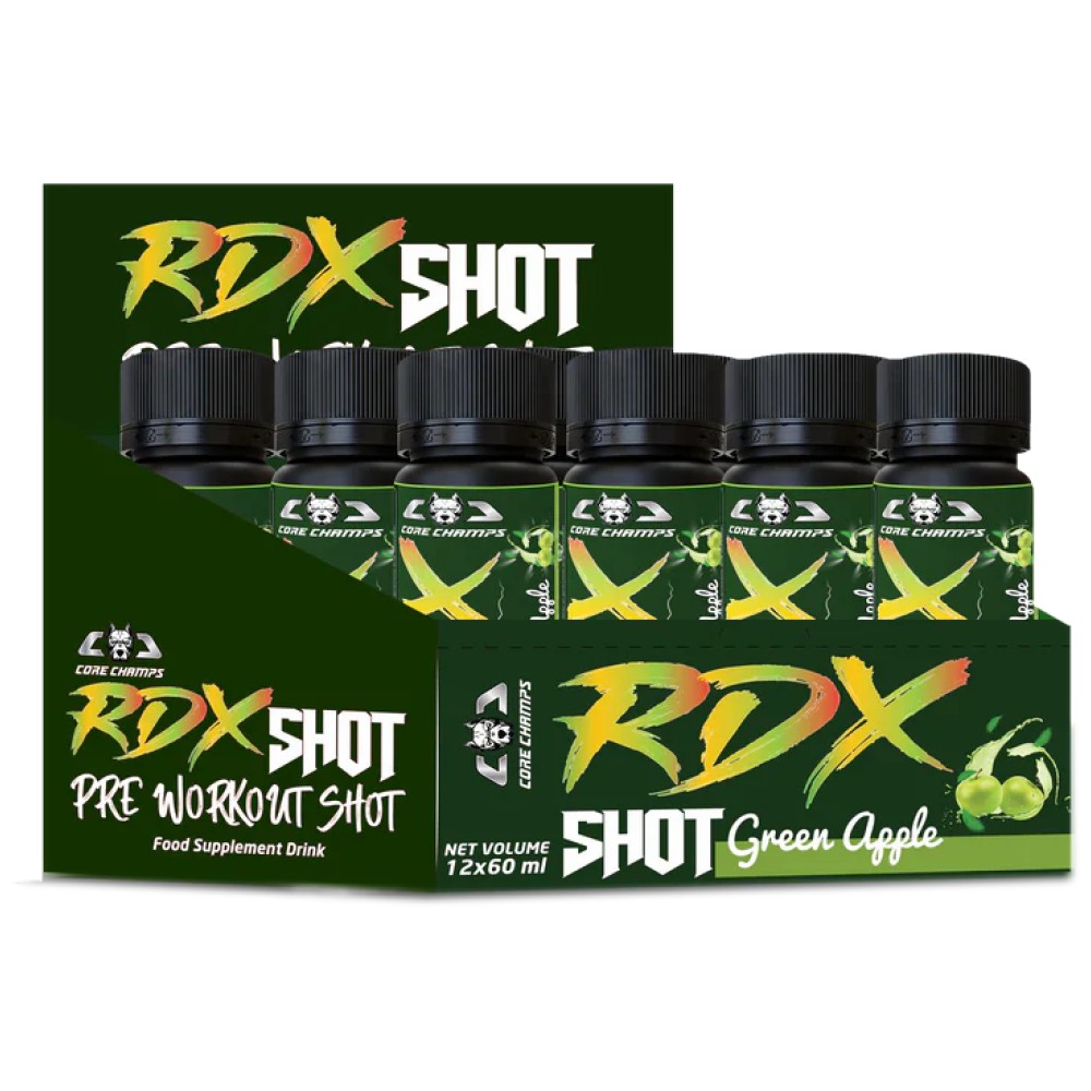 Core Champs by Kai Greene RDX Pre‑Workout Shot е концентриран предтренировъчен продукт във готова течна форма (60 мл), създаден да осигури бърза енергия, повишена физическа мощност, силен фокус и интензивно мускулно напомпване непосредствено преди тренировка. Формулата е разработена да подготви тялото и ума за високоинтензивни силови или кардио сесии.