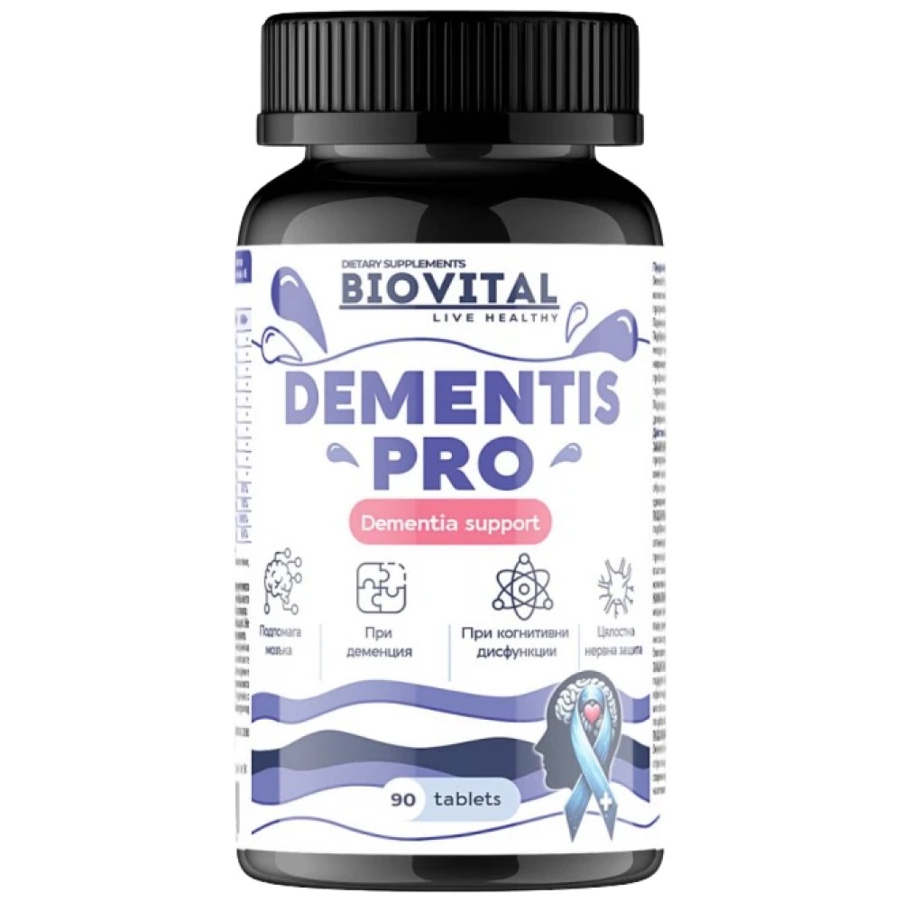 DEMENTIS PRO e иновативна хранителна добавка от БИОВИТАЛ, създадена за цялостна подкрепа на мозъчната функция и борба с прогресирането на невродегенеративни заболявания. Основната му цел е да забави когнитивния спад при различни форми на деменция, включително Алцхаймер, като насочено действа срещу основните патологични механизми - амилоидни плаки, тау-протеини и невровъзпаление. При Паркинсон добавката е разработена да защитава допаминергичните неврони, поддържа двигателните функции и намалява окислителния стрес в черната субстанция.