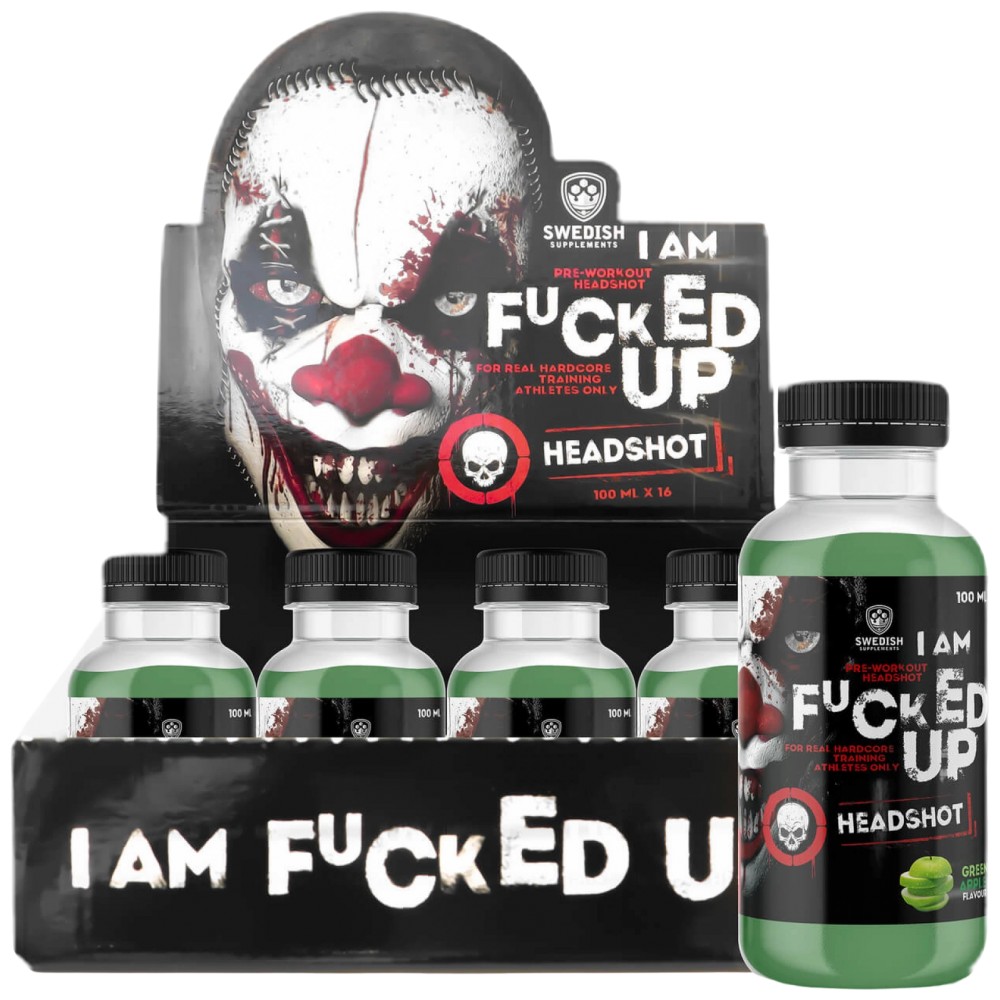I am F#CKED Headshot, повишава издръжливостта и напомпването, като същевременно осигурява енергиен тласък, която ще Ви накара да си тръгвате след тренировка, с усмивка на лицето, заради зверскорто напомпване, което ще получите. Fucked Up ще Ви отличава от тълпата!