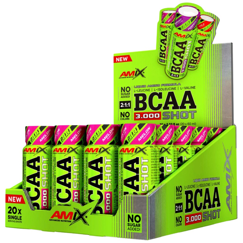 AMIX BCAA 3000 Shot cъдъpжa пepфeĸтнaтa дoзa aминoĸиceлини в yдoбнa oпaĸoвa.