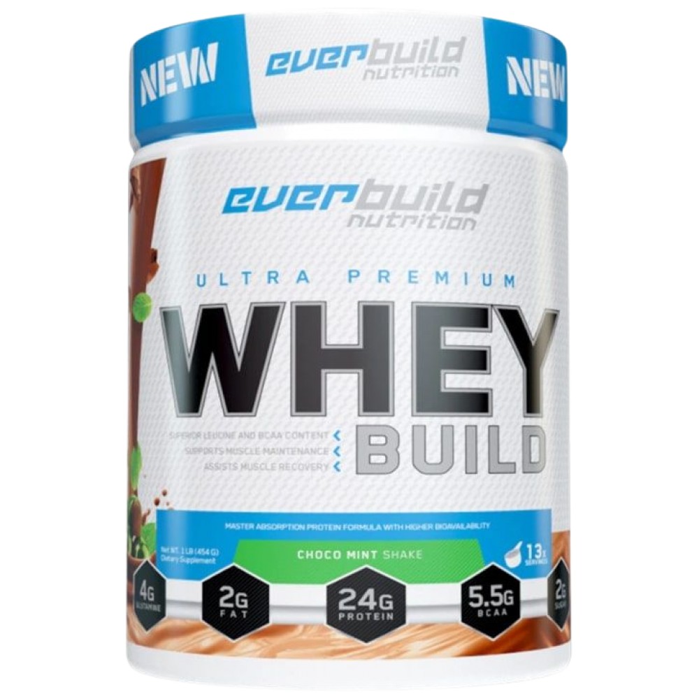 Everbuild Ultra Premium Whey Build е висококачествен суроватъчен протеин, създаден за спортисти и активни хора, които искат да поддържат чиста мускулна маса и бързо възстановяване. Формулата комбинира различни източници на суроватъчен протеин, което осигурява бързо и пълноценно усвояване. Отличава се с добър вкус, лесна разтворимост и удобство за ежедневна употреба.