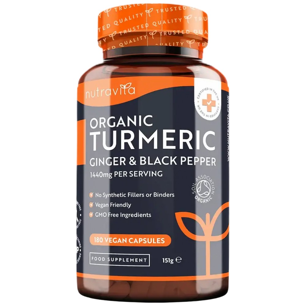 Този 100% органичен продукт е нашата висококачествена добавка от куркума, наситена с органичен черен пипер (пиперин) и джинджифил, за да подобри усвояването на мощния елемент на куркумата - куркумин. Пиперинът се използва за увеличаване на бионаличността (усвояването), което означава, че извличате максимума от ключовите съставки, което го прави мощна единствена по рода си формула за жизненост и здраве.
