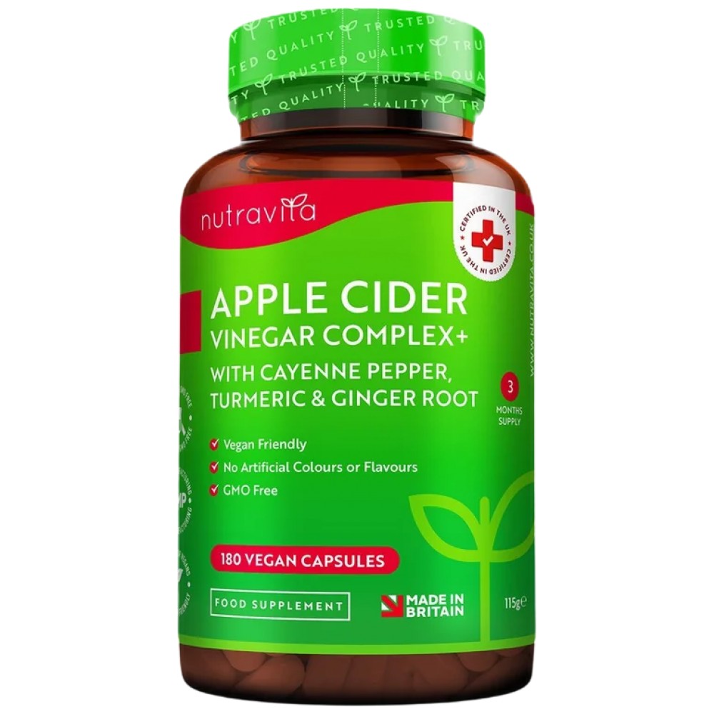 Открийте комплексните капсули с ябълков оцет на Nutravita, добавка с висока концентрация, която ви помага да подобрите формата си, да управлявате апетита си и да се справите с преждевременните пристъпи на глад! Тези капсули се предлагат със сила от 1000 mg, едни от най-високите на пазара, с добавени джинджифил, куркума и лют червен пипер.