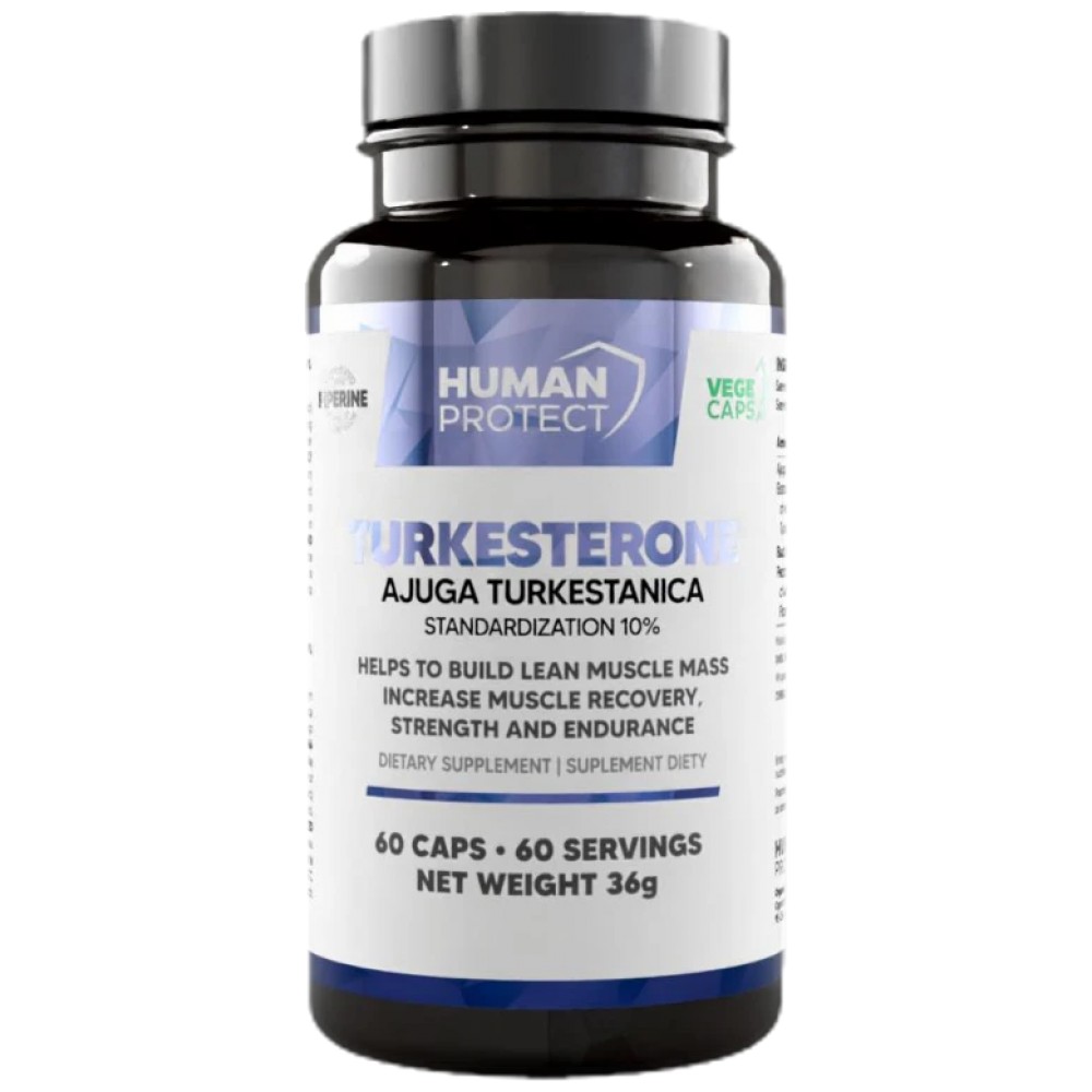 Human Protect Turkesterone 500 mg е хранителна добавка, съдържаща 500 mg туркестерон на капсула. Туркестеронът е естествен екдистероид, извлечен от растението Ajuga turkestanica, известен със своите потенциални ползи за мускулния растеж и физическата издръжливост.